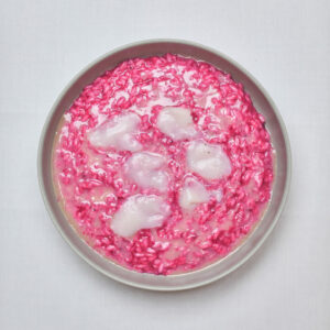 Risotto barbabietola, capesante leggermente affumicate e yogurt caramellato 25€
