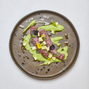 Salsiccia di Polpo, asparagi, mela verde e olio al prezzemolo 20€