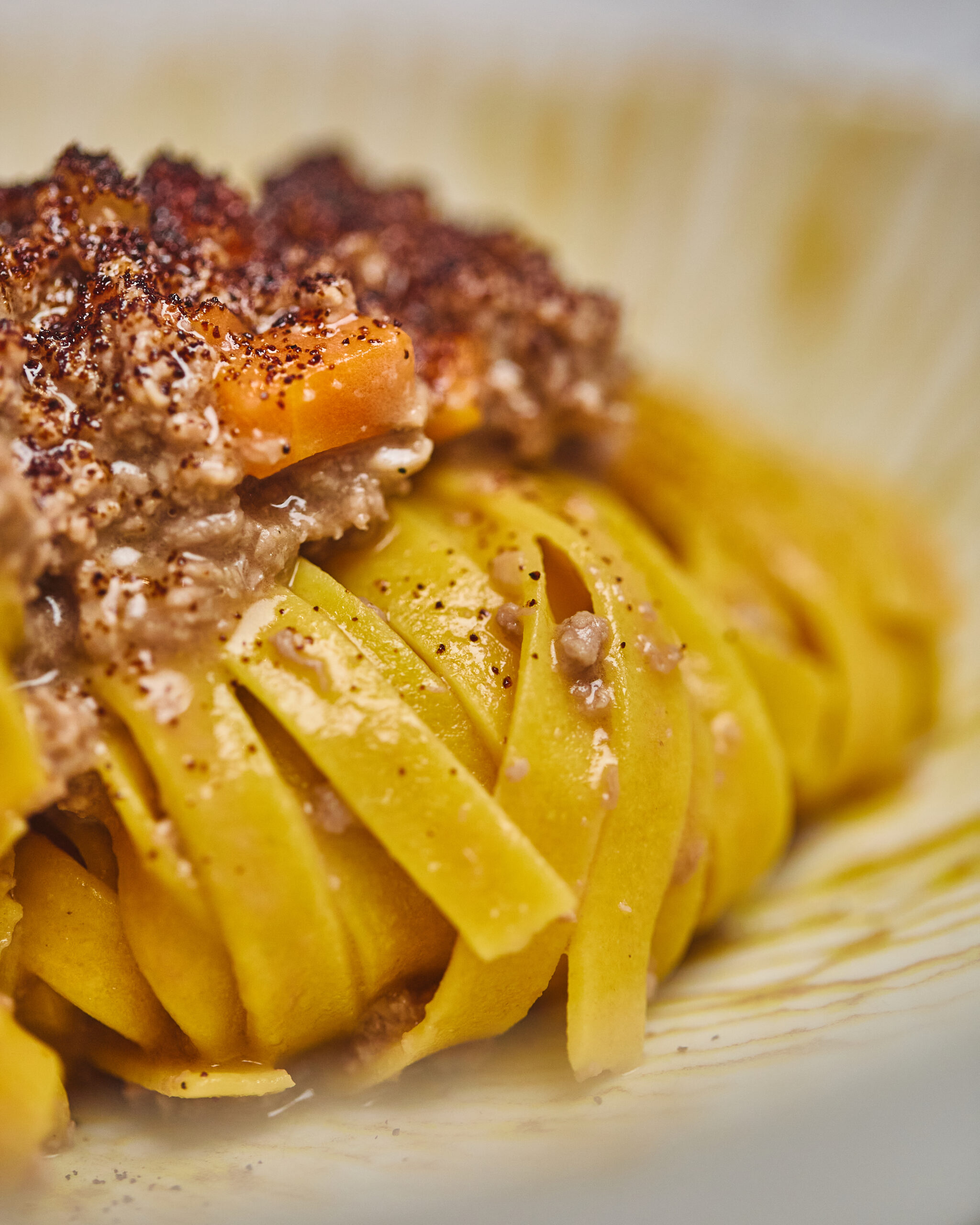 Tagliatelle al Ragù di Biancostato, polvere di limone bruciato e rosmarino 26€