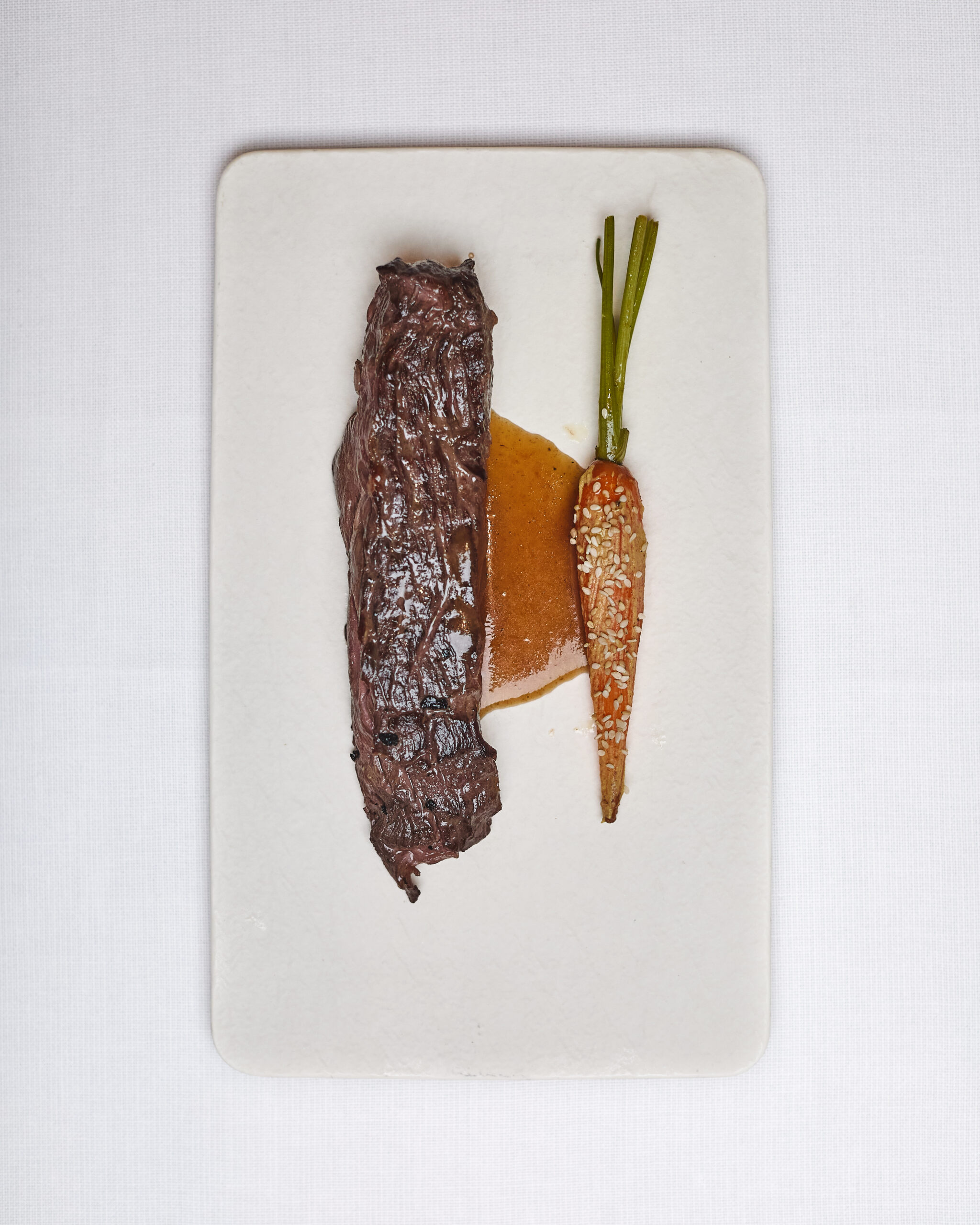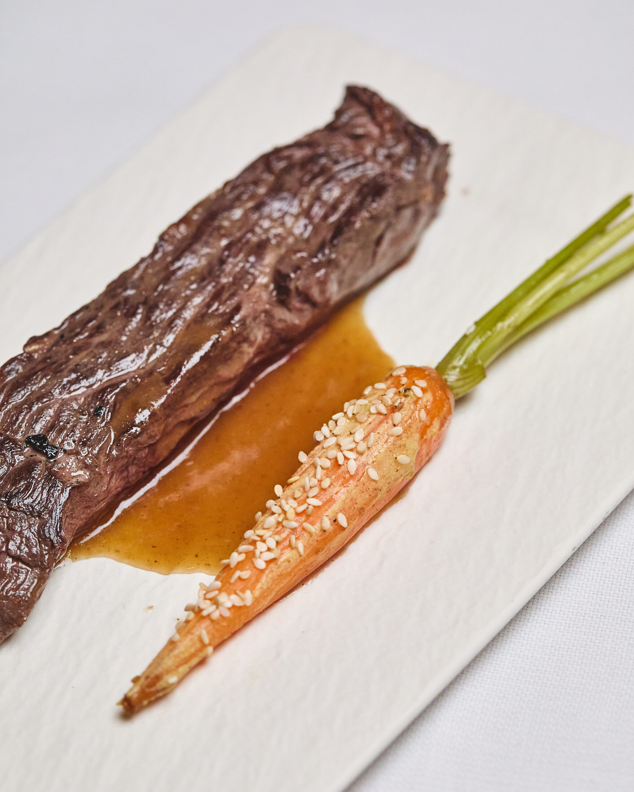 Bavetta di Manzo, carota alla senape, semi di sesamo e purea di sedanorapa €27